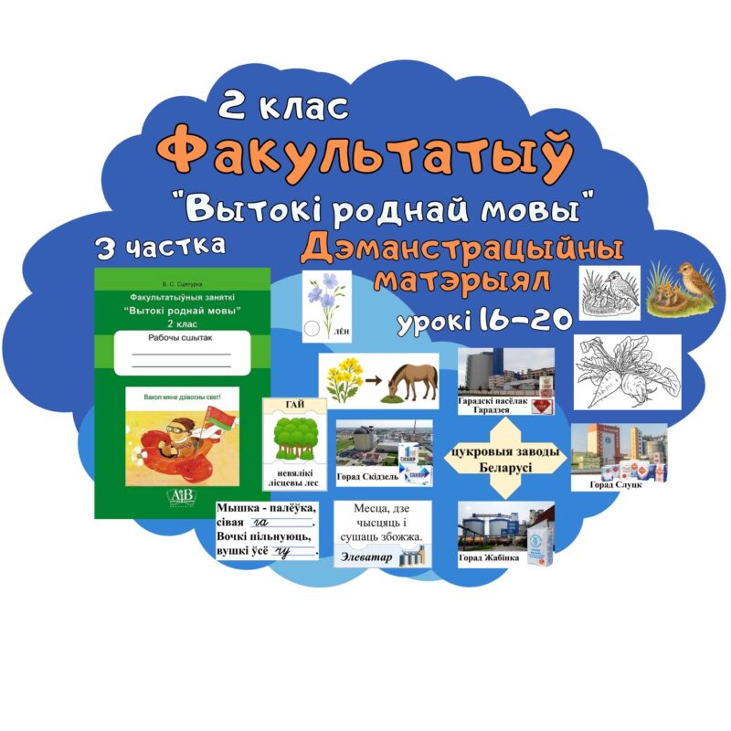 Дадатковы матэрыял да факультатыва «Вытокі роднай мовы». 11. Лугавыя кветкі. 12. Хто ў лузе жыве? 13. Сенажаць. Сенакос. 14. Ад зярняткі да каласка. 15. Жыта — ад слова жыць. Асноўнае, што ўваходзіць у матэрыял да кожнай тэмы: назва тэмы; словы-пераклады да тэмы; заданні да твораў; размалёўкі да тэмы. На відэа тэма №12. Рабочы сшытак 2-е…