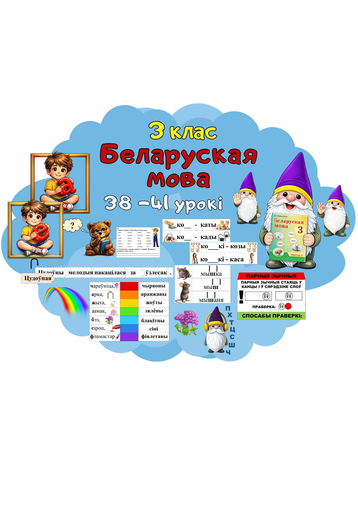 У матэрыяле прапанаваны памяткі па правілах, словы-пераклады, тэматычныя малюнкі да слоў-перакладаў у кожнай тэме,